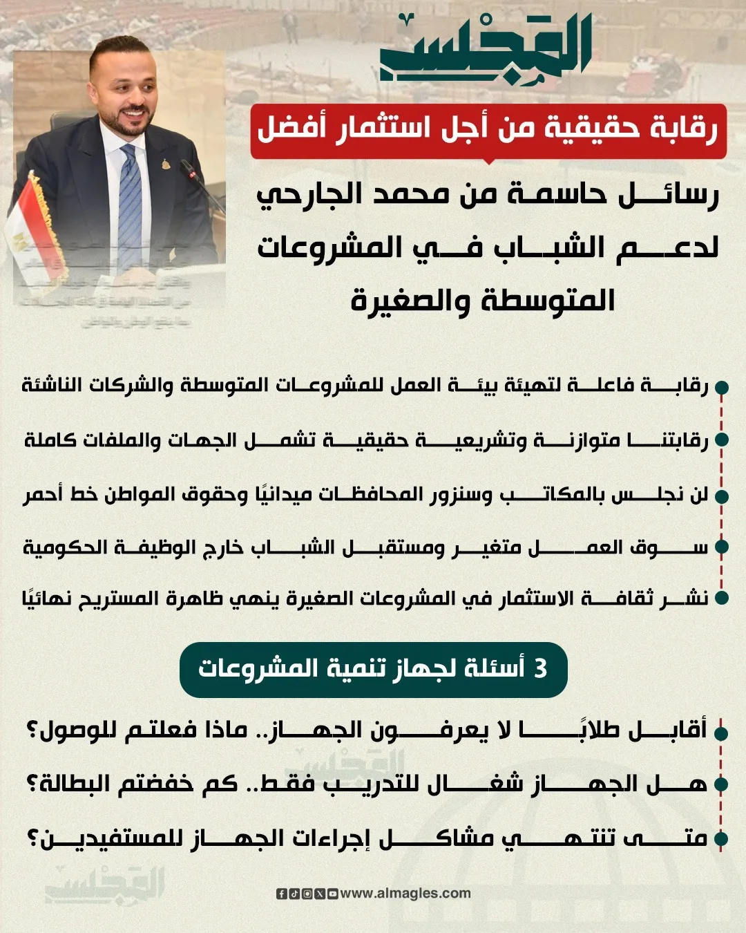 رسائل حاسمة من محمد الجارحي لدعم الشباب بالمشروعات