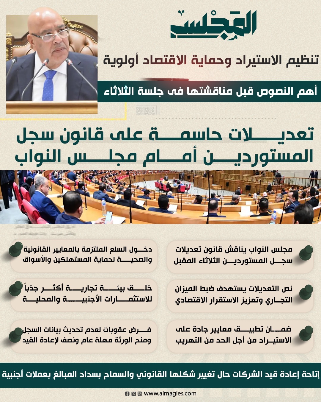 تعديلات حاسمة على قانون سجل المستوردين أمام مجلس النواب