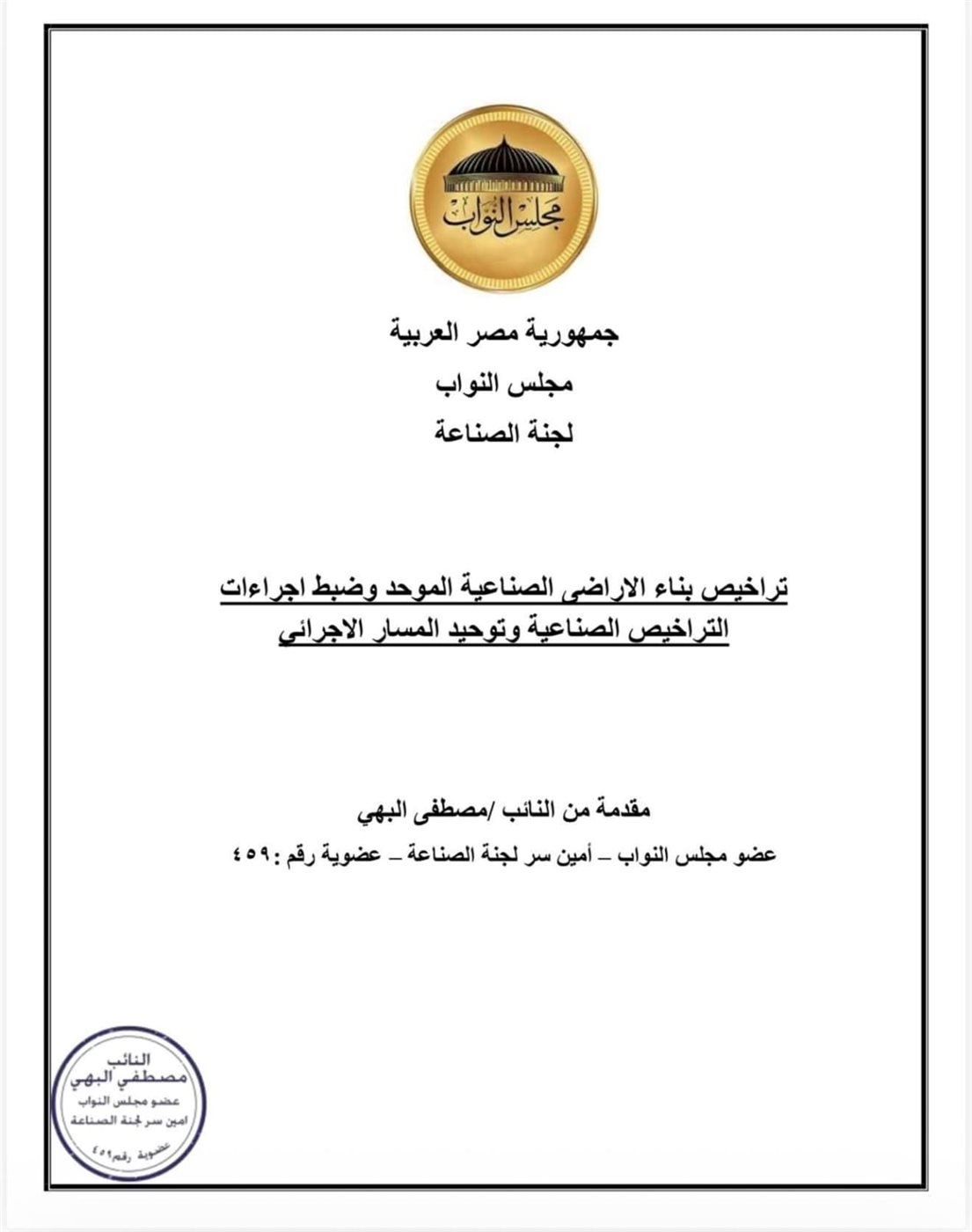 استجابت وزارة الصناعة للمقترح الذي تقدم به النائب مصطفى البهي، عضو مجلس النواب عن حزب الشعب الجمهوري وأمين سر لجنة الصناعة بالمجلس، والخاص بتبسيط إجراءات التراخيص الصناعية وتوحيد المسار الإجرائي للمشروعات الصناعية، بما يسهم في تحريك الطاقات الإنتاجية غير المستغلة وتحسين بيئة الاستثمار في القطاع الصناعي.