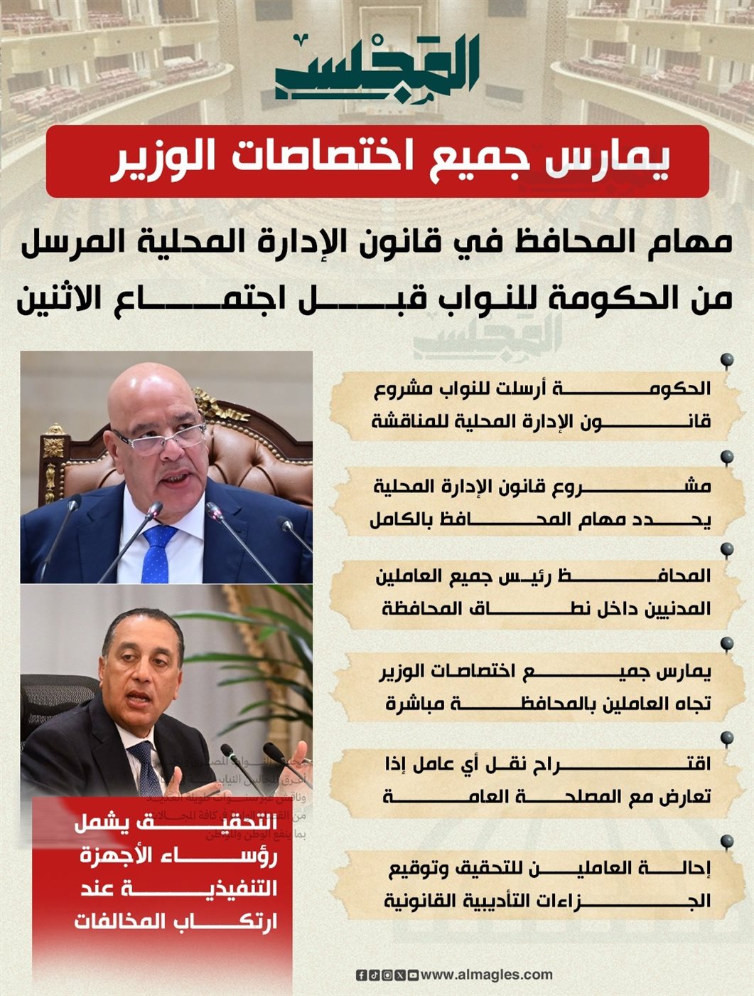 - مشروع قانون الإدارة المحلية يحدد مهام المحافظ بالكامل