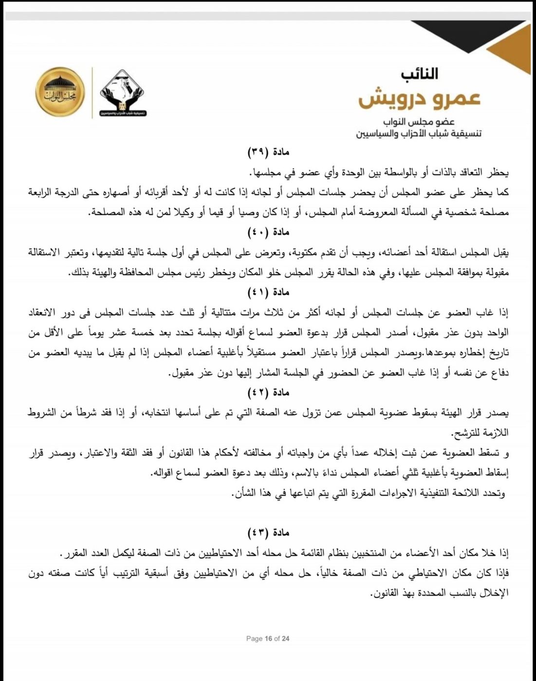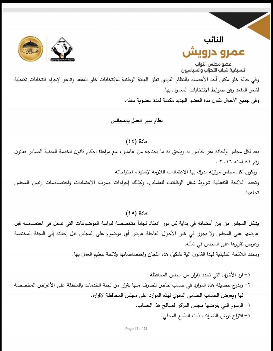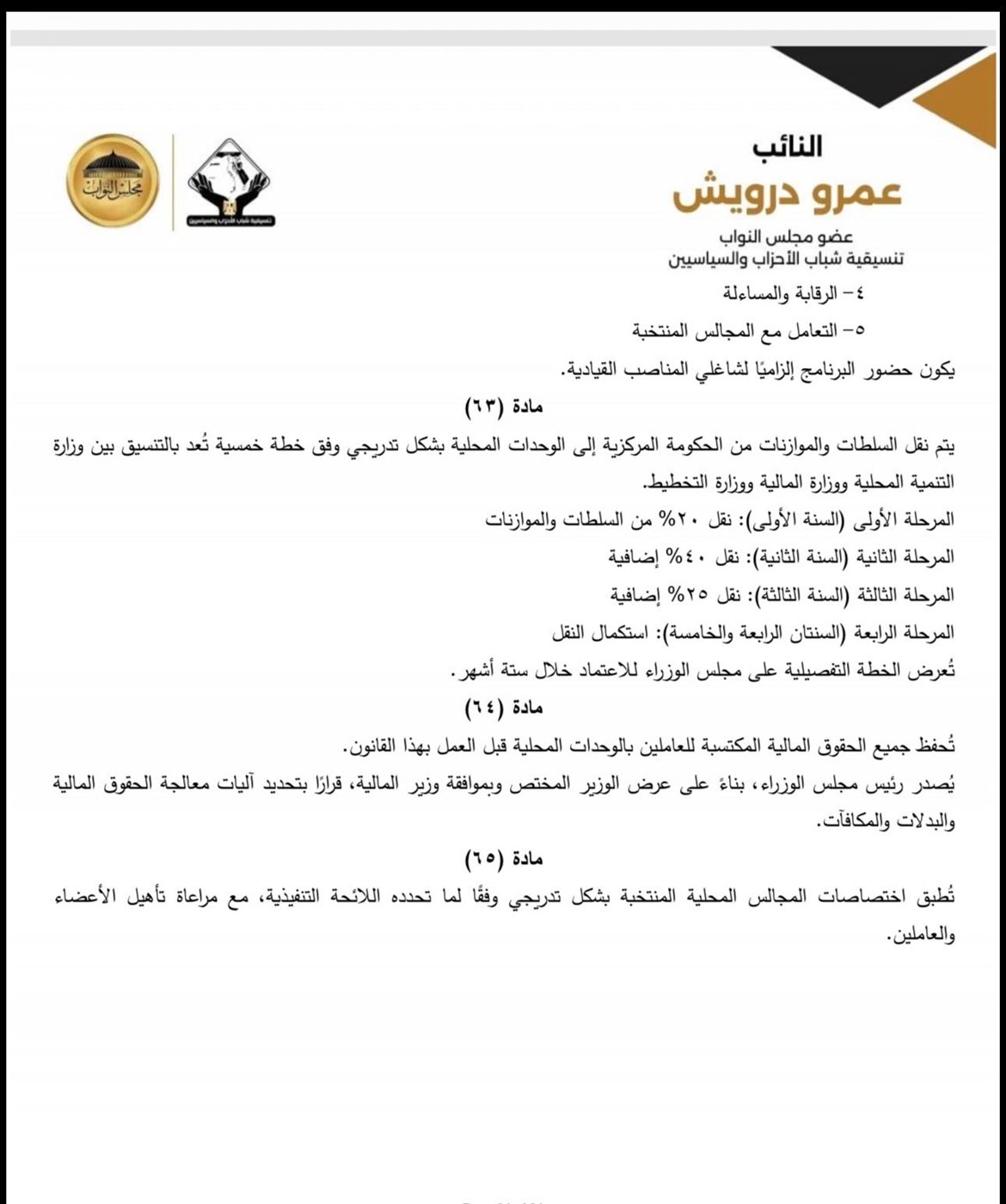 مشروع قانون مقدم من النائب عمرو درويش حول المجالس المحلية