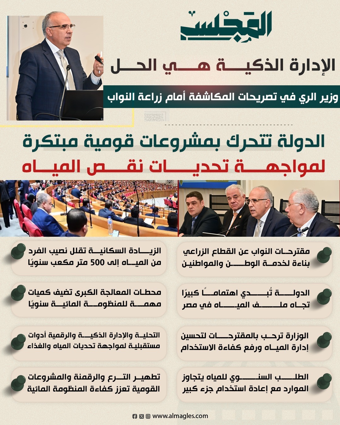 وخلال الانفوجراف التالي، يرصد تصريحات وزير الري أمام لجنة الزراعة بمجلس النواب