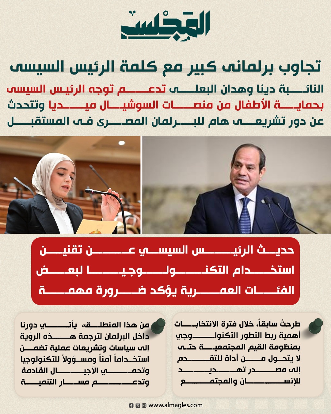 وأوضحت أن من هذا المنطلق، يأتي دورنا داخل البرلمان لترجمة هذه الرؤية إلى سياسات وتشريعات عملية تضمن استخداما آمنا ومسؤولاً للتكنولوجيا، وتحمي الأجيال القادمة، وتدعم مسار التنمية.
