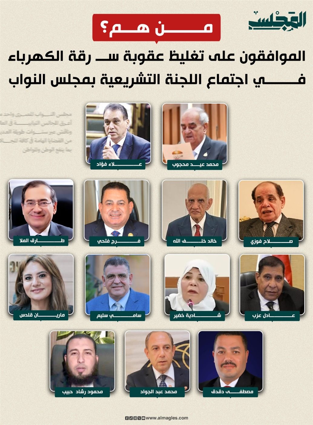 بالأسماء.. الموافقون على تغليظ عقوبة سرقة الكهرباء بـ"تشريعية النواب"