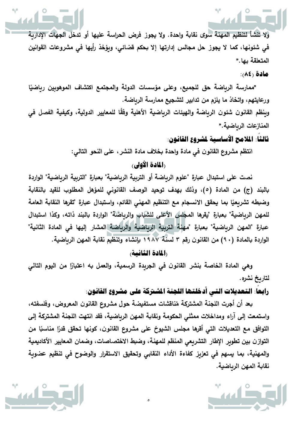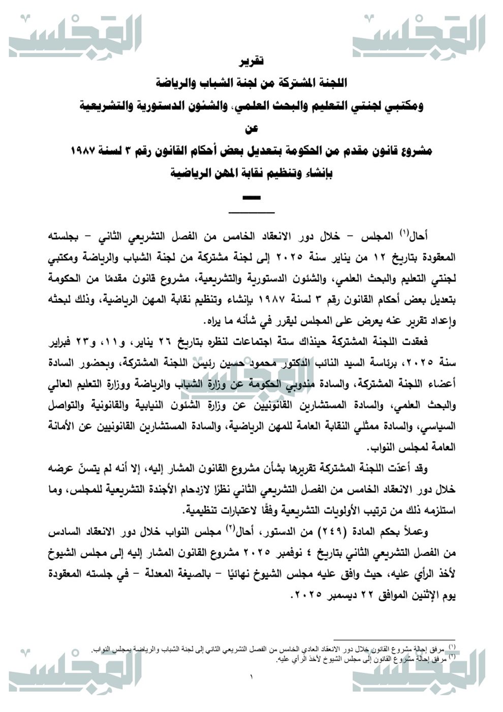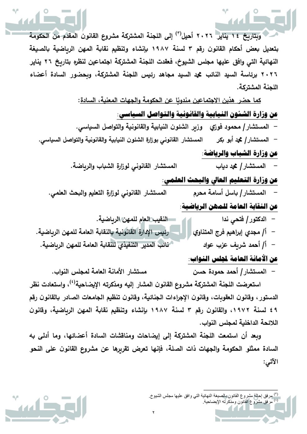 ننفرد بتقرير لجان النواب عن مشروع قانون نقابة المهن الرياضية