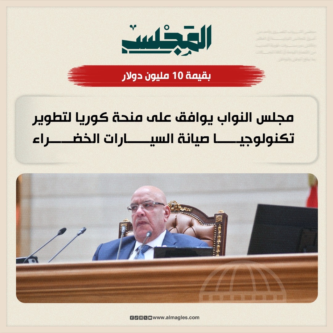 وافق مجلس النواب، على قرار رئيس جمهورية مصر العربية رقم 651 لسنة 2025، بشأن الموافقة على الخطابات المتبادلة الخاصة بمنحة مشروع تطوير تكنولوجيا صيانة السيارات الخضراء صديقة البيئة لمراكز التدريب المهني في مصر، بقيمة 10 ملايين دولار، بين حكومة جمهورية مصر العربية وحكومة جمهورية كوريا.