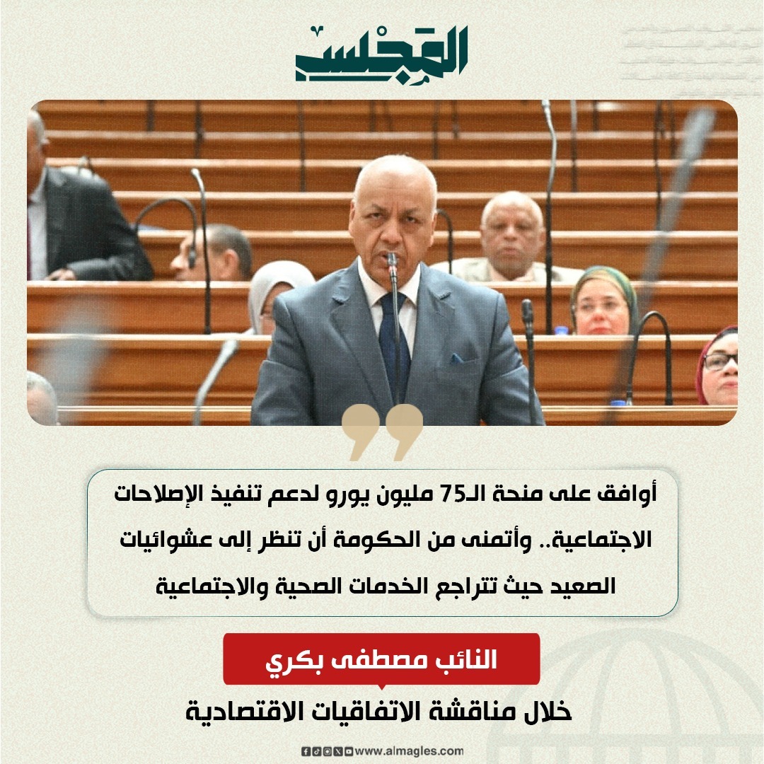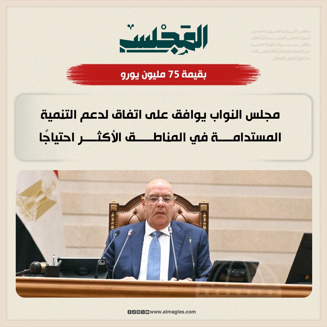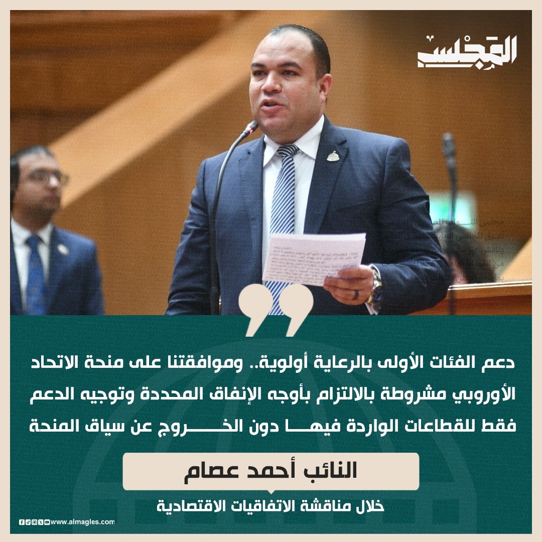 وناقش المجلس في البداية تقرير اللجنة المشتركة من لجنة الشئون الاقتصادية ومكاتب لجان الشئون الصحية، والإسكان والمرافق العامة والتعمير، والتضامن الاجتماعي والأسرة والأشخاص ذوي الإعاقة، والعلاقات الخارجية، عن قرار رئيس جمهورية مصر العربية رقم 730 لسنة 2025 بشأن الموافقة على الاتفاق التمويلي الخاص ببرنامج «دعم تنفيذ الإصلاحات الاجتماعية والاقتصادية على المستوى المحلي» بين حكومة جمهورية مصر العربية والاتحاد الأوروبي.