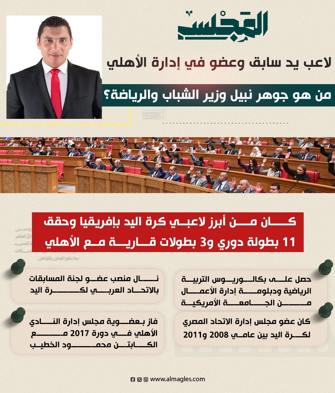 يعكس ترشيح جوهر نبيل لتولي وزارة الشباب والرياضة توجهًا نحو الاعتماد على قيادات خرجت من قلب الملاعب، وتمتلك خبرة عملية في التعامل مع اللاعبين والاتحادات والأندية، إلى جانب الإلمام بالجوانب الإدارية والتنظيمية للمنظومة الرياضية.